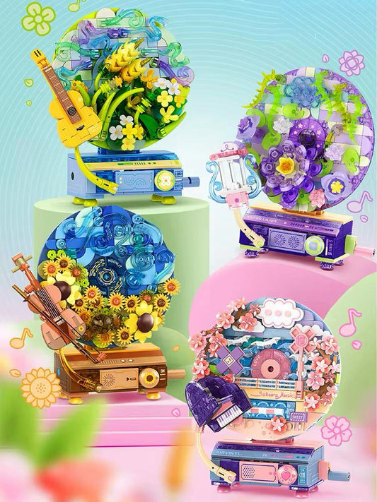 Bespaar 28%Paarse bloemen | muziekdoos | Bouwsteentjes