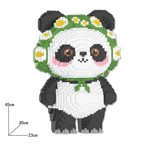 Bespaar 50%Panda met Bloemenkrans | Bouwsteentjes