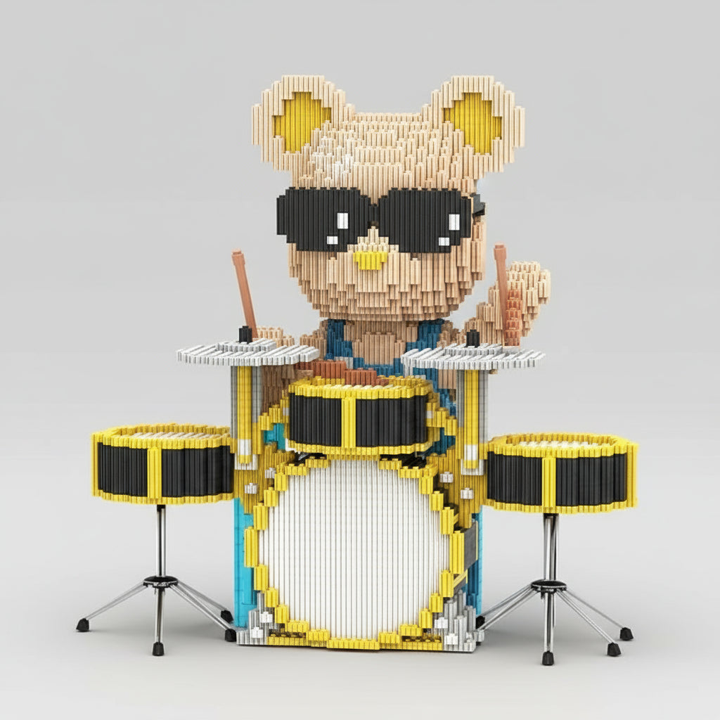 Deze coole beer met zonnebril en drumstel is klaar voor een stevig optreden in jouw kamer. Met meer dan 5000 steentjes bouw je een uniek en opvallend figuur vol karakter en ritme!