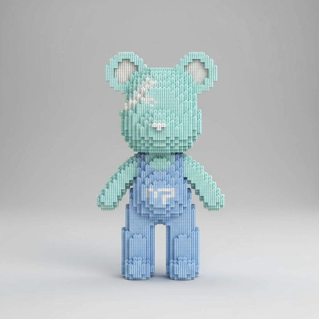 Zacht en dromerig – Beer met Lichtblauwe Tuinbroek | Bouwsteentjes