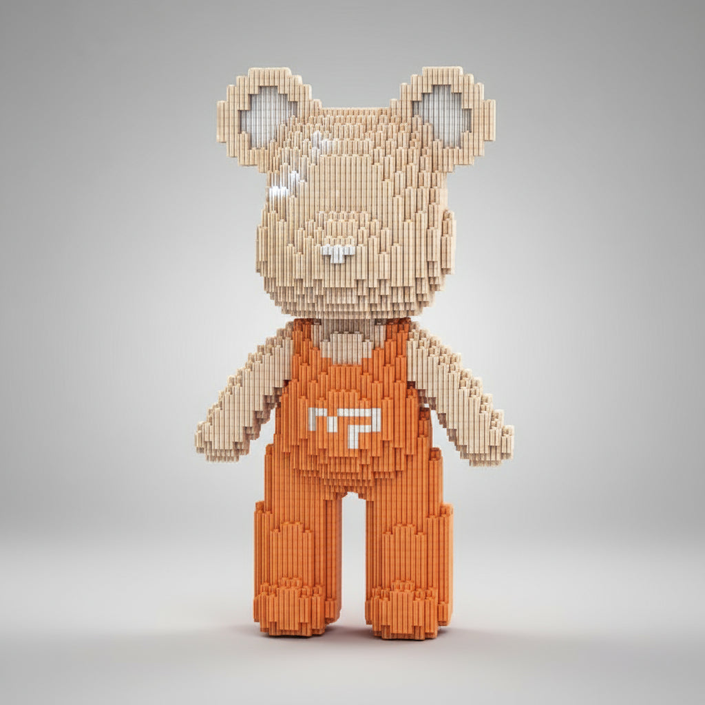 Warm en speels – Beer met Oranje Tuinbroek | Bouwsteentjes