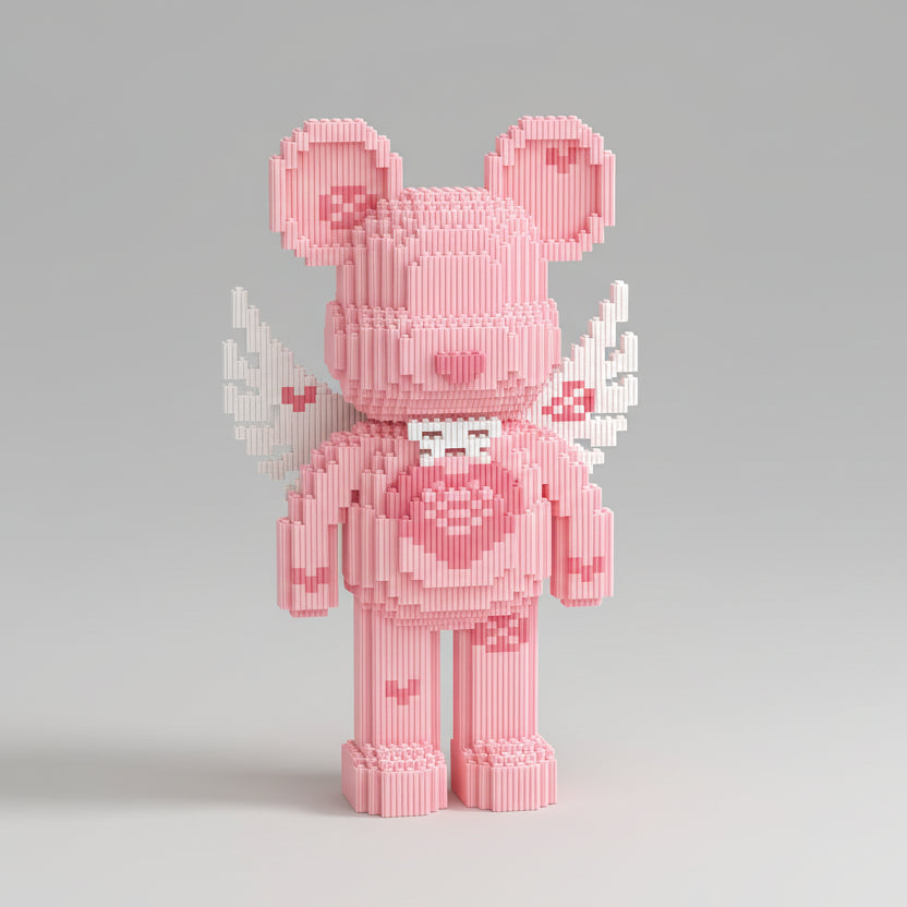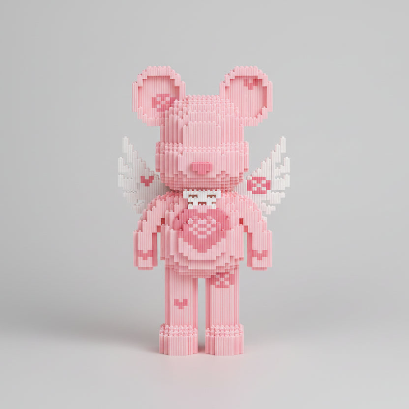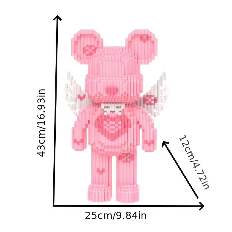 Deze grote roze beer met vleugels is een echte blikvanger. Met zijn hartdetails en engelachtige uitstraling combineert dit bouwpakket kracht met zachtheid. Een indrukwekkend model dat niet alleen leuk is om te bouwen, maar ook perfect staat als decoratie.
