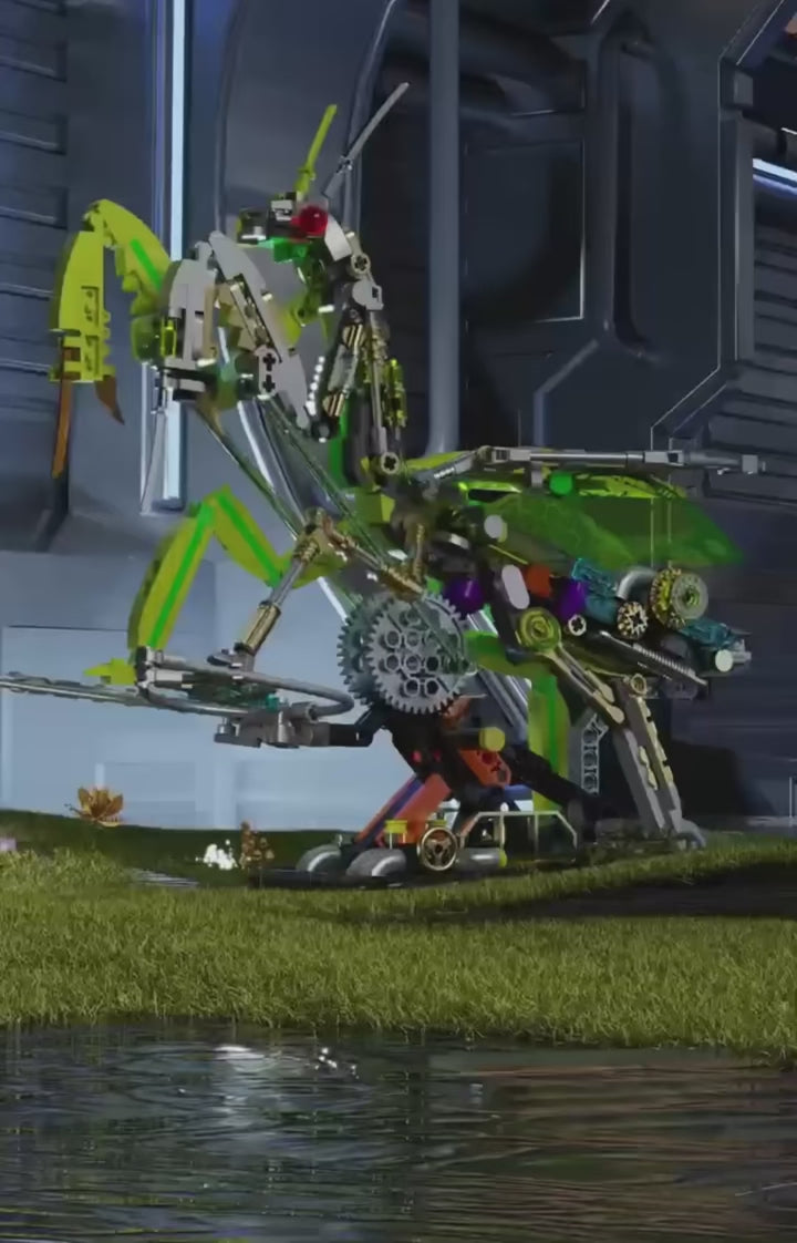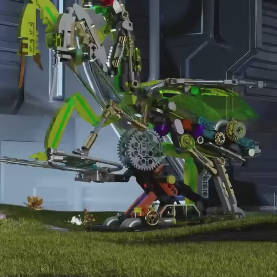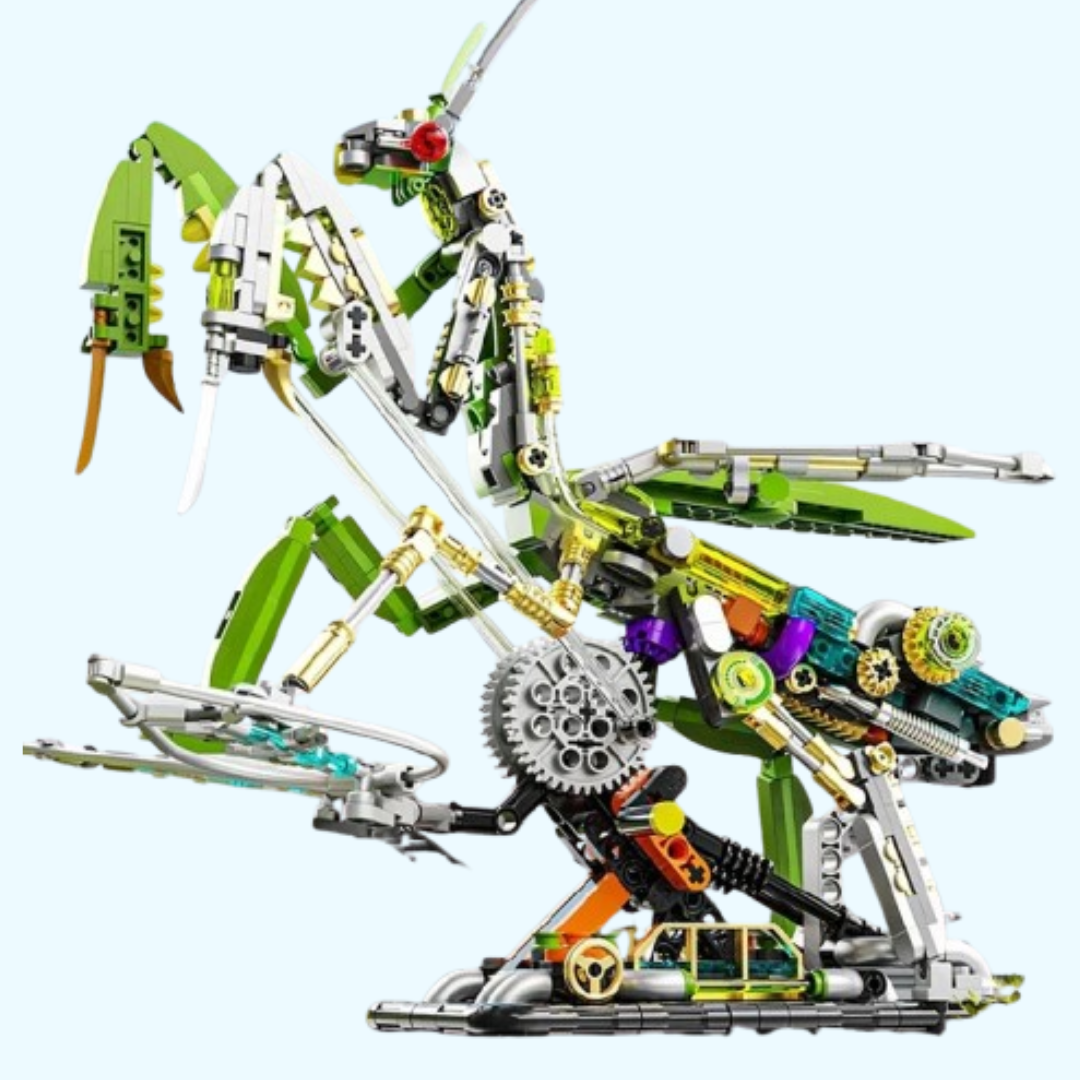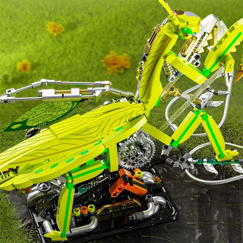 Deze futuristische sprinkhaan zit boordevol gave details en technische onderdelen. Door aan de knop te draaien komt hij echt tot leven – een unieke combinatie van bouwen én beweging.