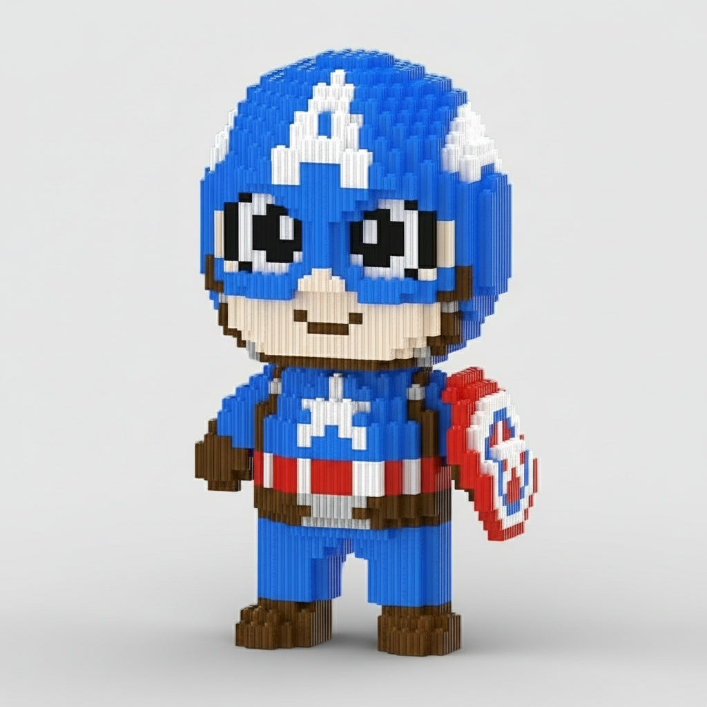Dit blauwe bouwpakket is een eerbetoon aan één van de bekendste helden ooit. Met zijn rode schild en ster op zijn borst is dit een echte klassieker. Leuk om te bouwen, nog leuker om neer te zetten.