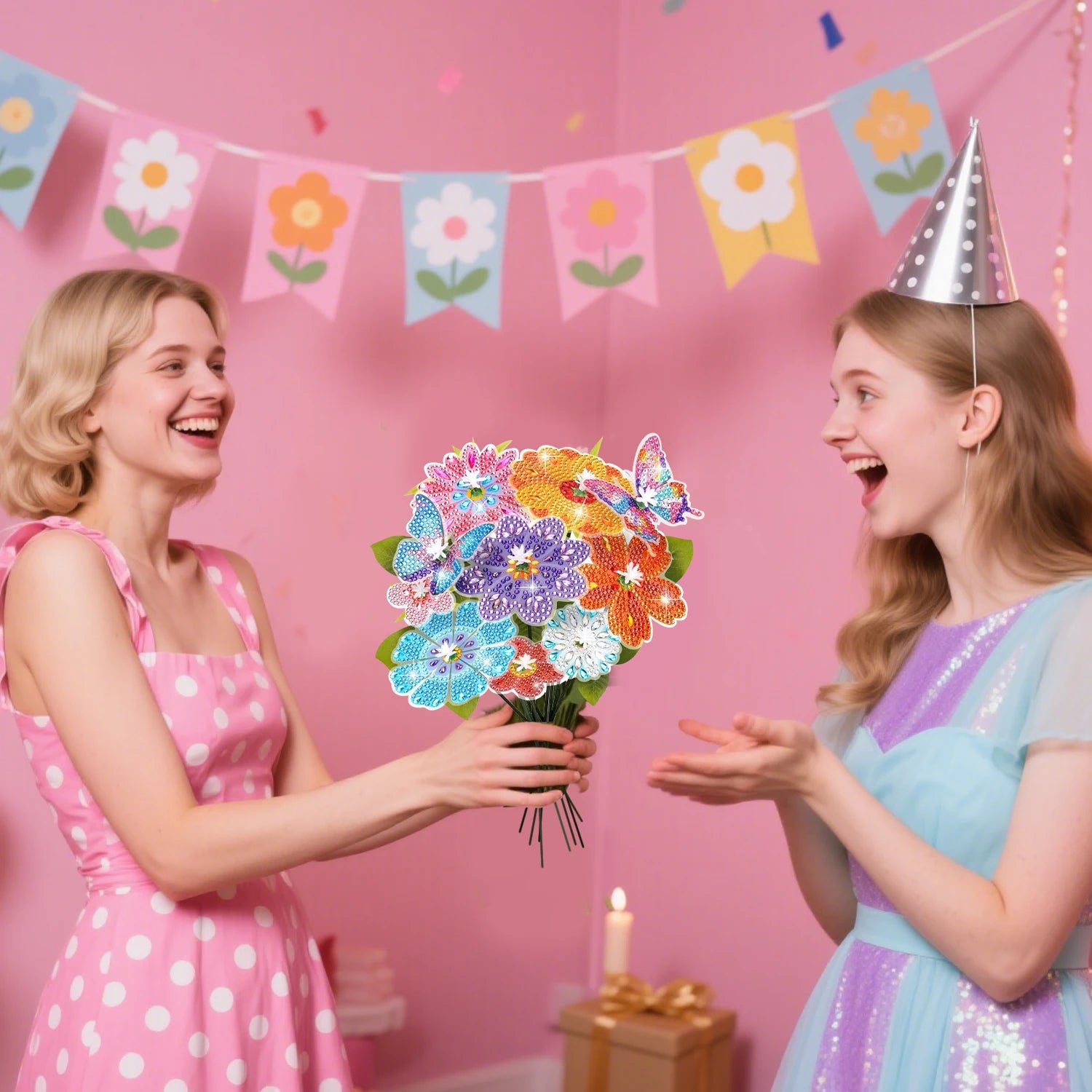 Dit diamond painting pakket brengt een explosie van kleur en vrolijkheid in huis. Of je nu een kinderkamer wilt opfleuren of een origineel cadeautje zoekt: dit boeket zit vol charmante bloemen én twee vrolijke vlinders. Alle onderdelen zijn los, zodat je ze helemaal naar eigen smaak kunt rangschikken.