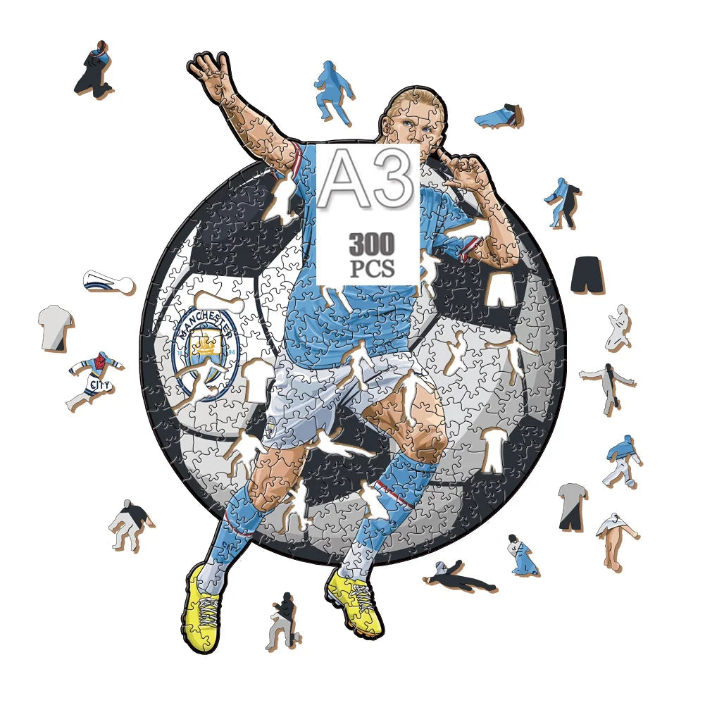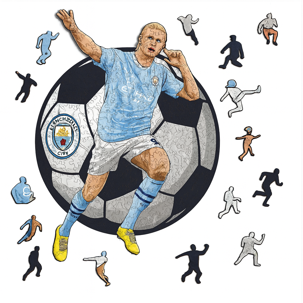 Laat de kracht en energie van Erling Haaland tot leven komen met deze unieke houten puzzel. Terwijl je elk stukje op zijn plek legt, bouw je aan een spectaculair kunstwerk dat perfect is voor fans, verzamelaars en iedereen die houdt van ontspannen puzzeltijd.