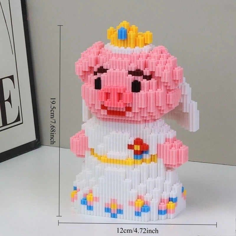 Dit schattige varkensstel straalt liefde uit met hun bloemetjes, hoedje en trouwkleding. Een leuk en grappig bouwproject dat meteen een glimlach op je gezicht tovert.