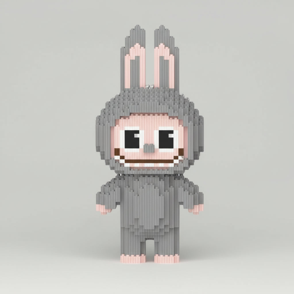 De Grijze Labubu is een tijdloze klassieker. Met haar rustige grijstint, grote oren en herkenbare glimlach past deze Labubu perfect in elk interieur. Het extra grote formaat maakt dit bouwpakket niet alleen leuk om te bouwen, maar ook een echte eyecatcher in huis.
