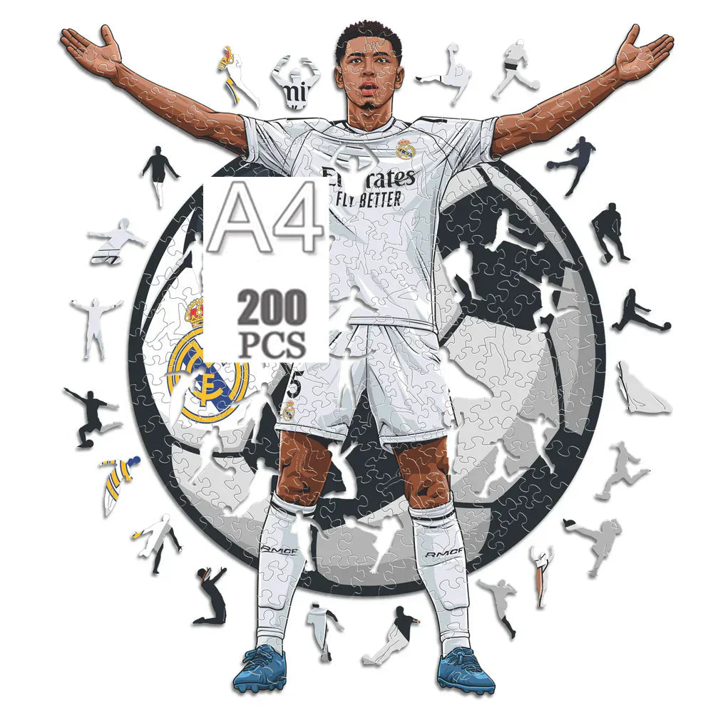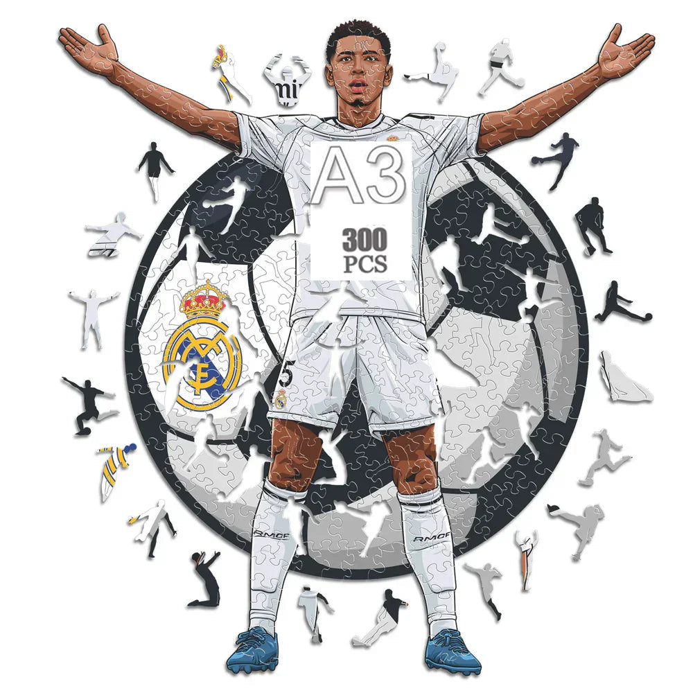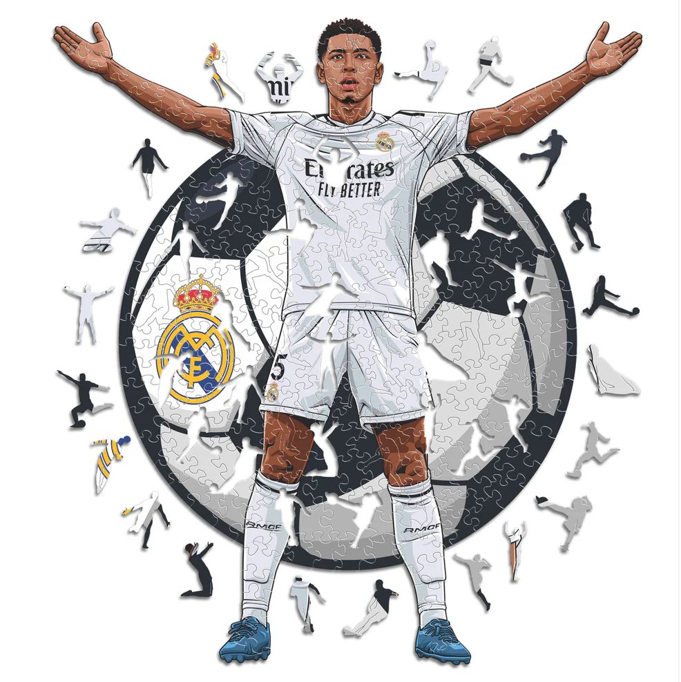 Breng de klasse van Jude Bellingham tot leven met deze prachtige houten puzzel. Stuk voor stuk bouw je aan een iconisch Real Madrid-beeld, perfect voor fans, verzamelaars en iedereen die graag even helemaal ontspant.