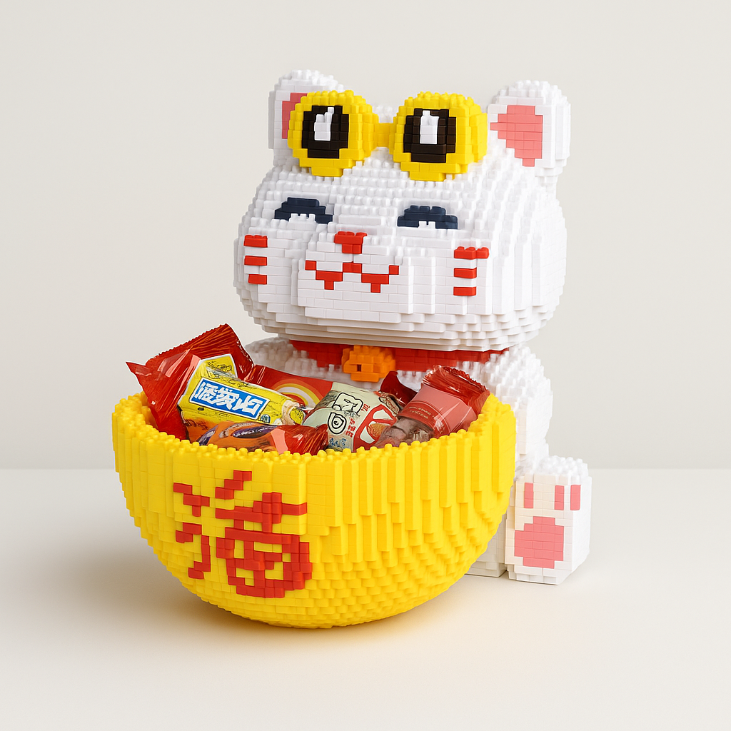 Deze zwaaiende gelukskat is niet alleen leuk om te bouwen, maar ook om snoepjes, pennen of kleine spullen in te bewaren. Een vrolijke toevoeging aan je kamer met een Aziatisch tintje.