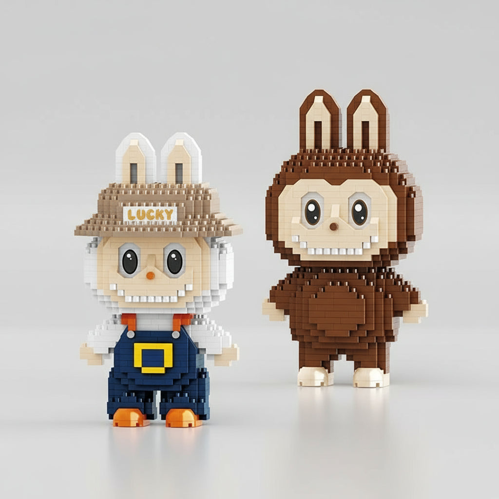 Bouw jouw eigen Labubu in tuinbroek – vrolijk en schattig!