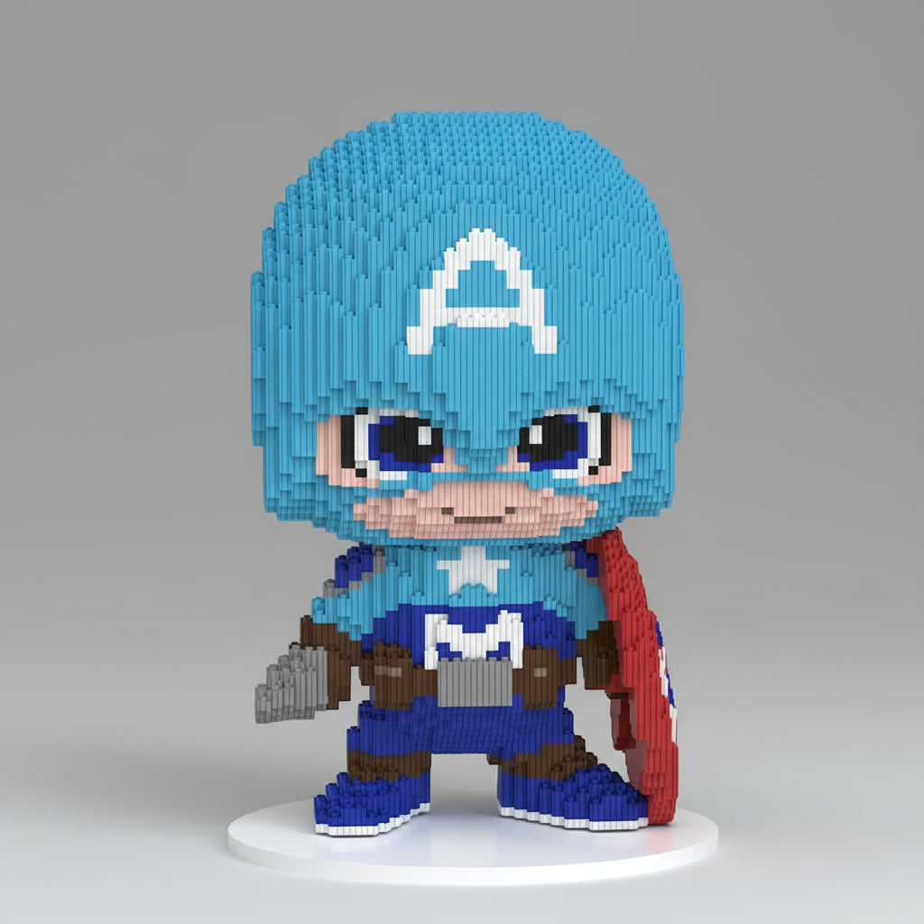 Deze stoere superheld met blauwe helm en rode cape is een echte blikvanger. Met maar liefst 15.000 steentjes bouw je een mega figuur vol karakter, perfect voor fans van helden en grootse bouwprojecten.