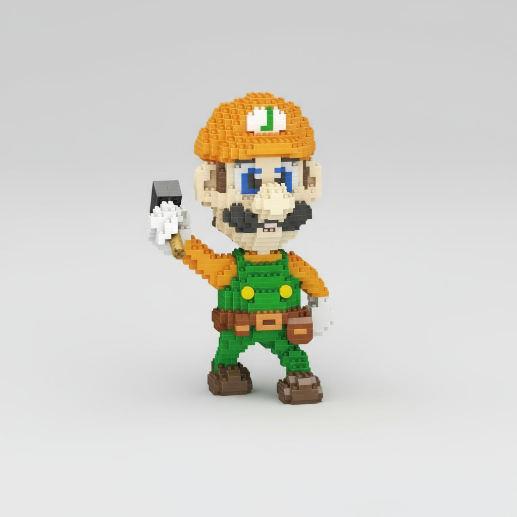 Oranje Loodgieter in groen pakje | Bouwsteentjes