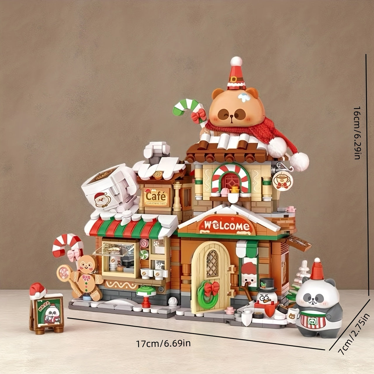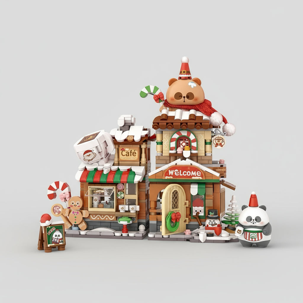 Stap binnen in de warme sfeer van het Panda Café! Met zijn vrolijke kerstkleuren, schattige details en speelse figuren is dit bouwproject een heerlijke manier om te ontspannen en iets moois te creëren.