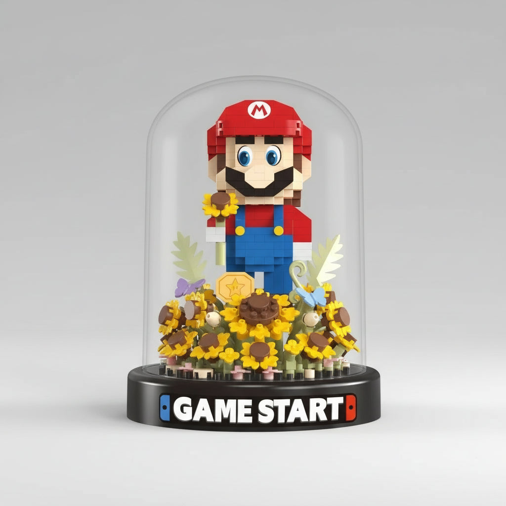 Deze iconische rode loodgieter staat midden in een kleurrijke bloementuin, beschermd door een stijlvolle stolp. Een vrolijk bouwpakket dat nostalgie en creativiteit combineert. Leuk om te bouwen én een echte blikvanger voor op je bureau, plank of gamehoek.