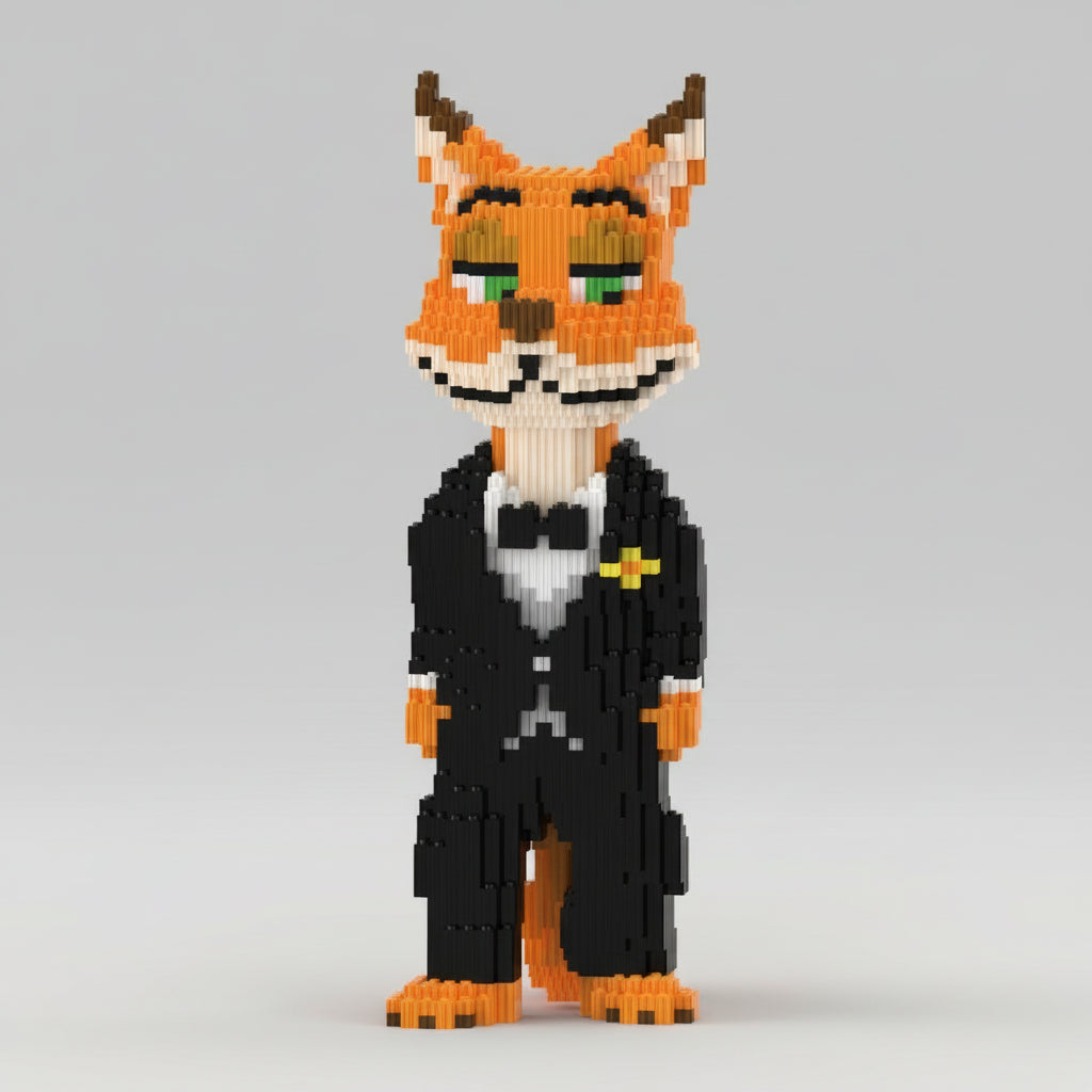 Deze elegante vos in strak pak straalt klasse en persoonlijkheid uit. Een bijzonder bouwproject waarbij je stap voor stap een opvallend figuur creëert dat direct de aandacht trekt. Perfect als decoratie en een echte eyecatcher voor liefhebbers van unieke bouwsets.