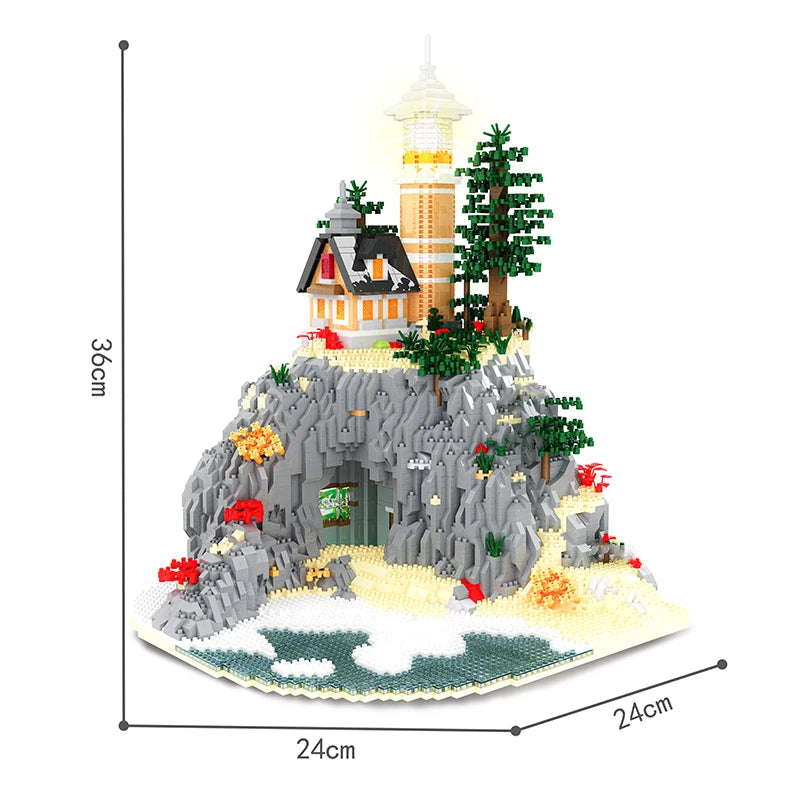 Deze prachtige vuurtoren staat trots op een berg en is omringd door kleine details. Dankzij het ingebouwde lampje straalt hij extra sfeer uit, vooral in het donker.