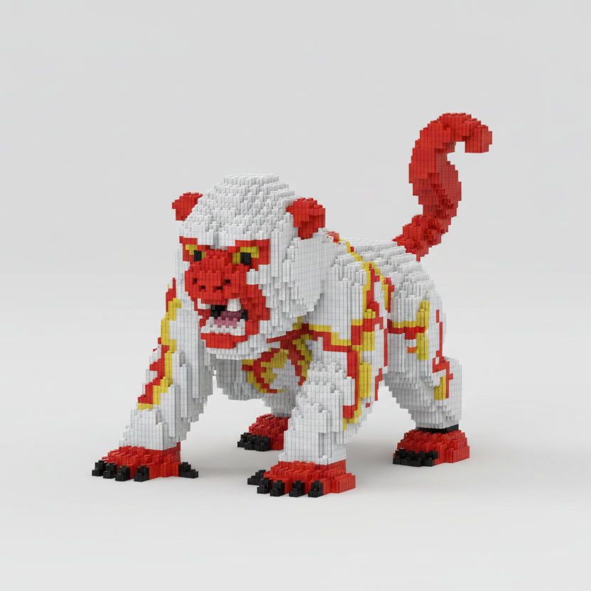 Dit imposante bouwpakket toont een krachtige witte aap in een dynamische houding. Met zijn grote formaat, uitgesproken kleuren en stoere uitstraling is dit model een echte eyecatcher. Een intens maar enorm bevredigend bouwproject voor liefhebbers van grote en opvallende builds.